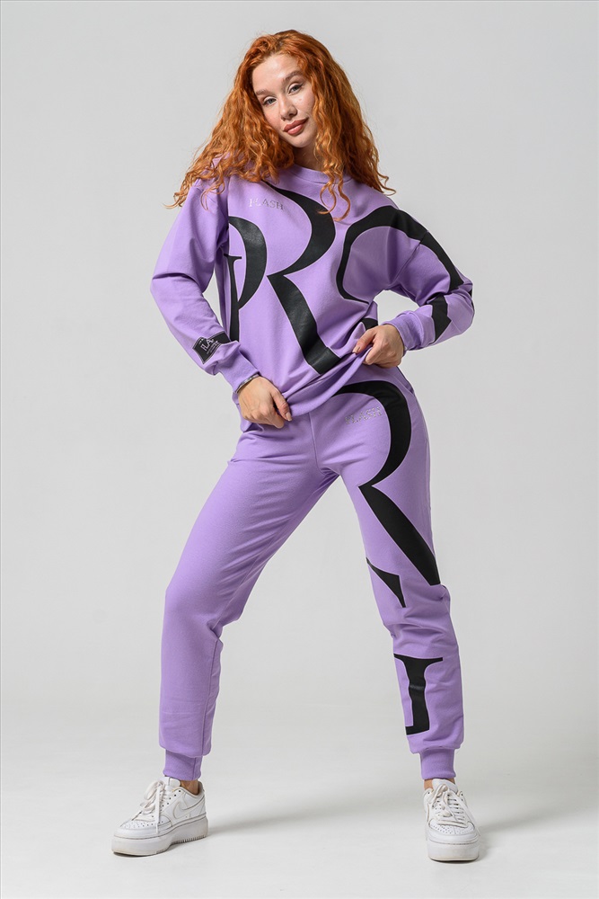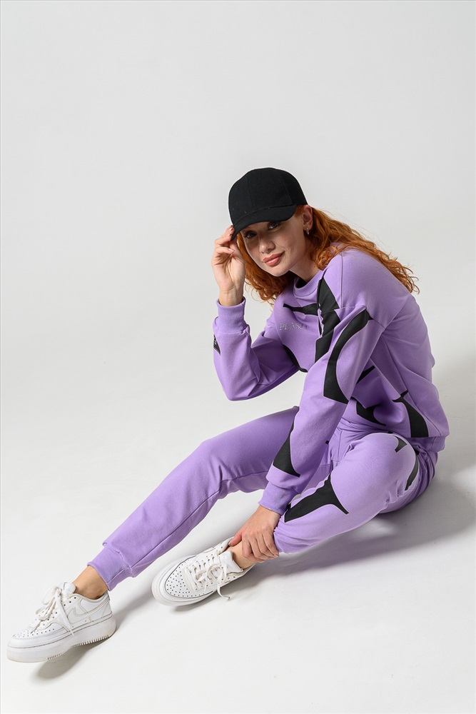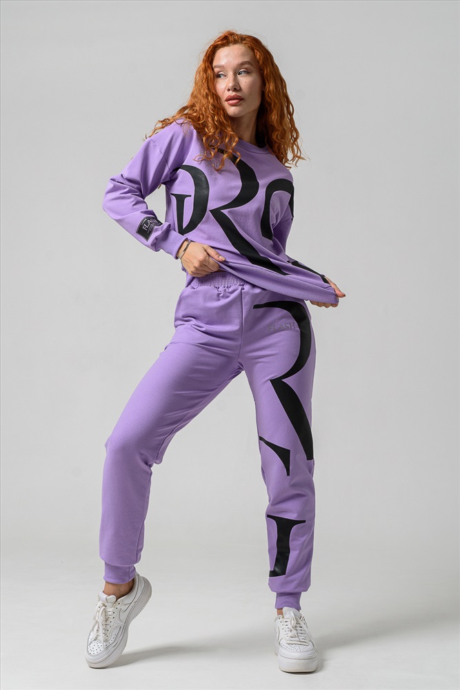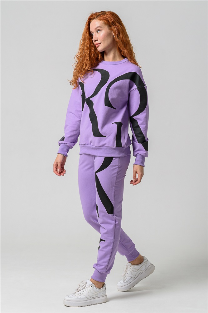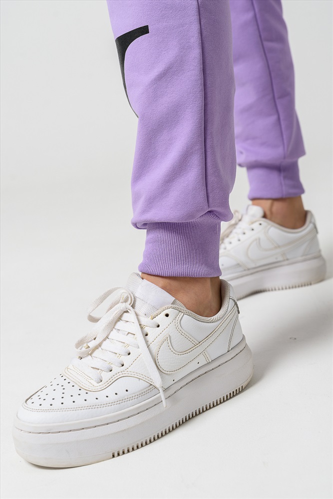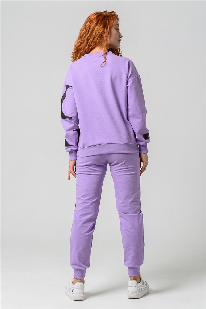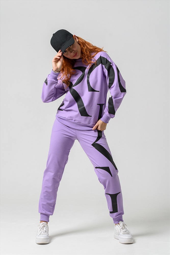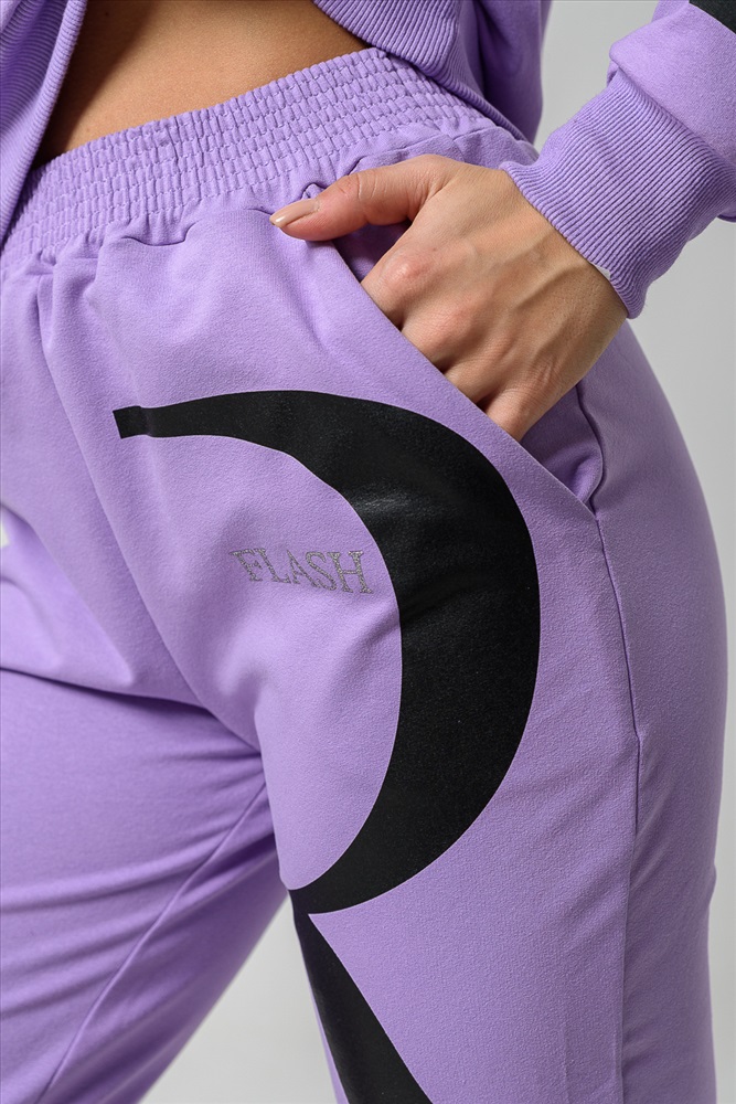 Застежка: без застежки Женские брюки из футера 2-х нитки с лайкрой. По все длине брюк печать. По низу брюк резинка.