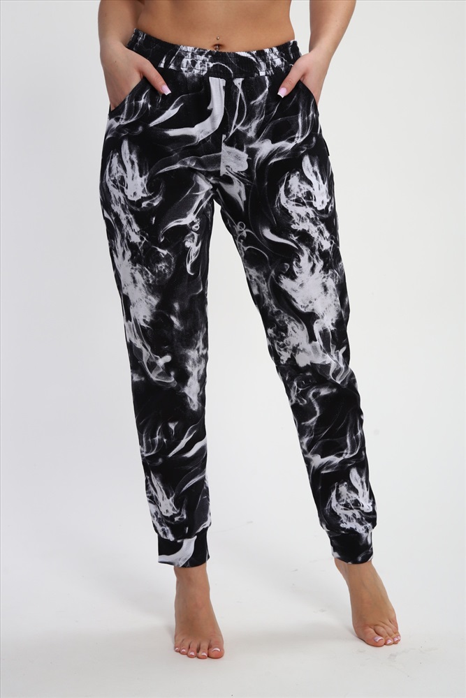 Состав: Хлопок 100% Модель: Брюки женские Дым Б-01 Тип товара: брюки Материал: кулирка | кулирка Бренд: OMG Карман: боковые | прорезные НДС: Без НДС Особенности: на резинке Отделка: с карманами | с манжетами Посадка: средняя посадка Рисунок: абстракция Сезонность: лето | осень | весна | зима Силуэт: прямой | свободный Скидка: любая | от 10% и больше Стиль: домашний Застежка: без застежки Женские брюки для дома созданы для максимального комфорта и уюта в повседневной жизни. Модель выполнена из мягкого текстиля на основе хлопка, что делает изделие особенно легким и приятным к телу. Трикотажные штаны с резинкой на поясе обеспечивают отличную посадку по фигуре, не стесняют движений и подходят для разных размеров, в том числе больших. Это отличный выбор одежды для сна или отдыха после насыщенного дня. Джоггеры с боковыми карманами позволяют удобно разместить необходимые мелочи, сохраняя практичность и стиль одновременно. Классический крой с прямыми штанинами подходит как для беременных женщин, так и для тех, кто ценит свободу движений и комфорт каждый день. Приятный принтом добавляет индивидуальности вашему образу вы сможете выбрать вариант, который подчеркнет ваш стиль. Трикотажная ткань отличается высоким качеством пошива и долговечностью. Материал дышащий, не вызывает раздражения даже при длительном ношении. Брюки идеально подойдут как повседневные: их можно надевать дома, брать с собой в поездки или использовать как пижамные штаны для спокойного сна. Средняя посадка подходит большинству типов фигур, а эластичная резинка на талии гарантирует удобство независимо от вашего размера. Такие женские брюки станут незаменимой частью гардероба в любое время года благодаря универсальному дизайну и функциональности. Для любительниц домашнего уюта эти трикотажные джоггеры станут настоящей находкой: они отлично сочетаются с футболками, свитшотами или майками. Карманы сбоку позволят держать под рукой все необходимое например телефон или ключи во время домашних дел. Мягкий хлопковый материал способствует хорошей терморегуляции: вам будет комфортно как летом, так и зимой. Пижамные штаны подходят не только для отдыха дома или сна они также могут стать частью стильного повседневного образа благодаря универсальному дизайну и актуальным деталям оформления. Таблица размеров и веса