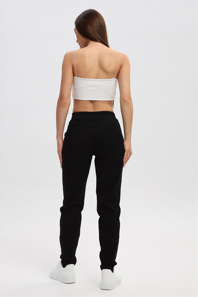 Застежка: без застежки Вельветовые женские штаны с резинкой на талии сочетание комфорта и стиля. Темные оттенки делают их актуальными осенью и зимой, а универсальный зауженный фасон впишется в повседневные, деловые и молодежные образы. Высокая талия и эластичный пояс обеспечивают комфортную посадку, что делает эти брюки идеальными для повседневной носки. Практичные боковые карманы подчеркивают удобство модели и позволяют хранить мелочи всегда под рукой.