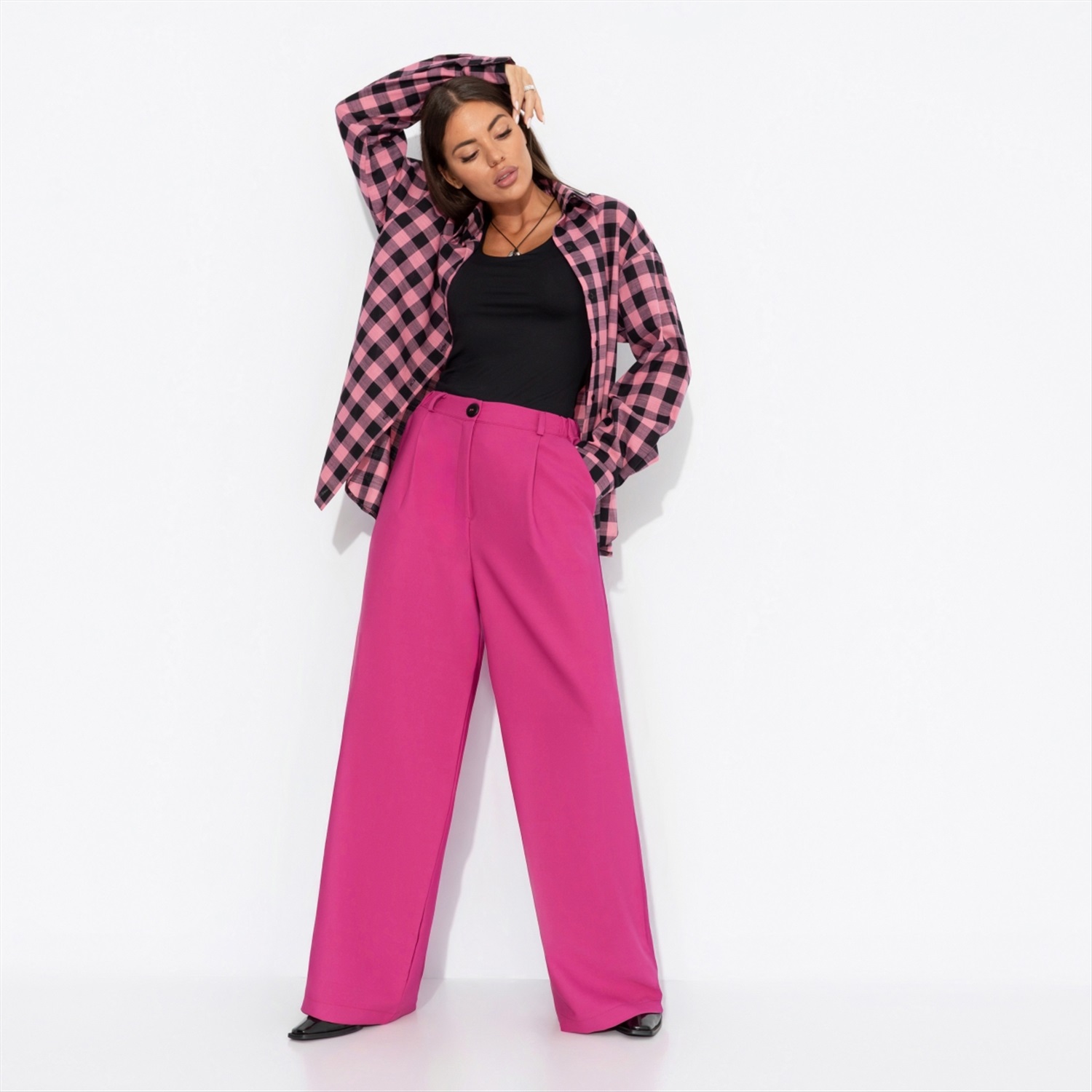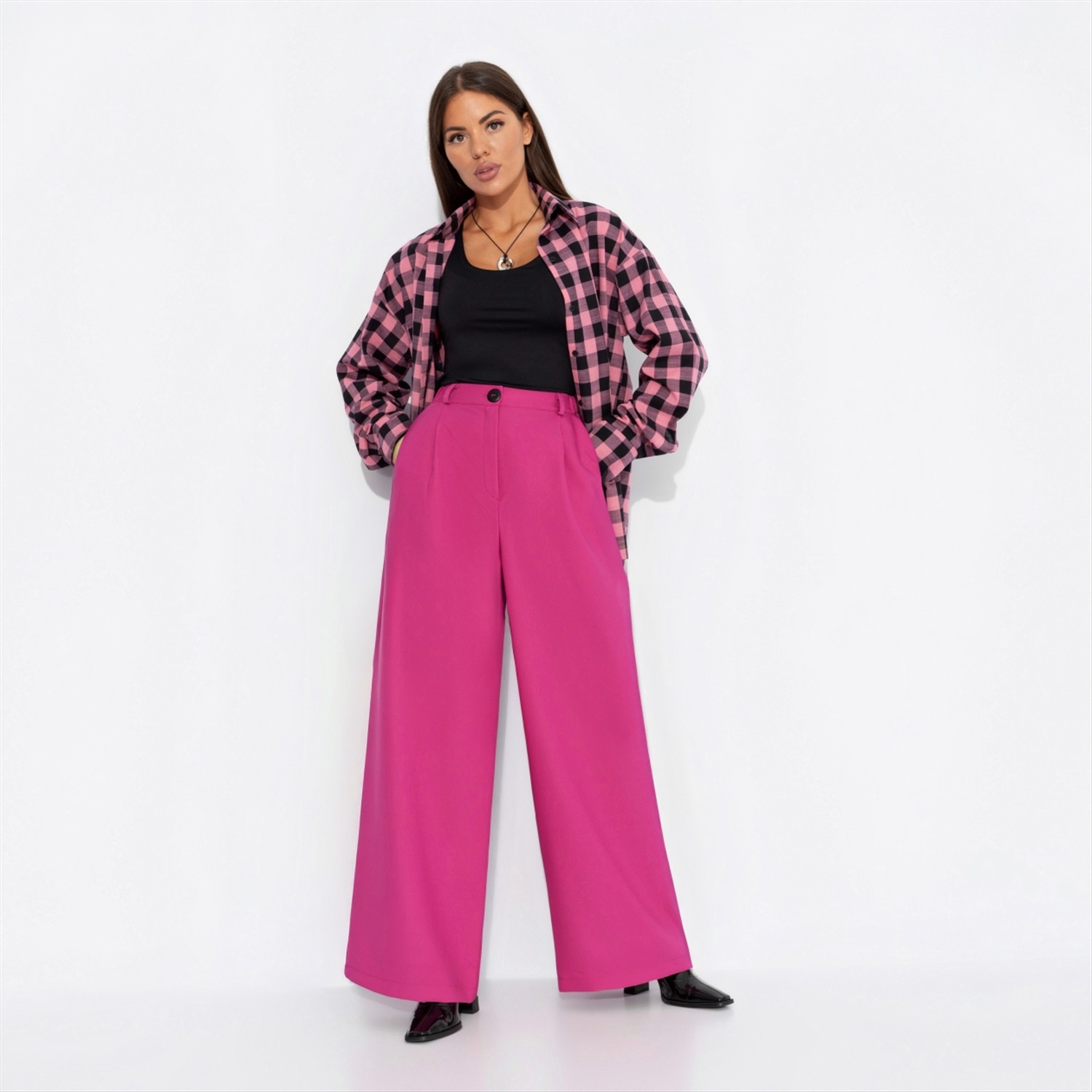 Состав: Барби (60% полиэстер, 37% вискоза, 3% спандекс) Плотность ткани: Плотная Тип ткани: Текстиль Вид застежки: Пуговица/-ы, молния Высота посадки: Высокая Карманы: В боковом шве Основной цвет ткани: Фуксия Отрезная талия: Есть Подклад: Нет Резинка по талии: Есть Рисунок/раппорт: Нет, все изделия идентичны Сезон: Круглогодичный Стиль: Повседневный Фасон брюк: Палаццо Фасон брюк: Палаццо Параметры модели на фото: