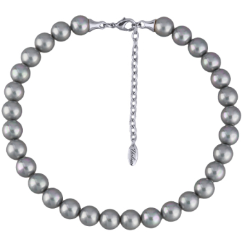 Изготовлено из ювелирного сплава на основе латуни с гальваническим покрытием родием. Изделие украшает круглый жемчуг Майорка серо-голубого цвета диаметром 12мм. Длина 38см. Шпрингельный замок с удлинителем 7см. 30 бусин.