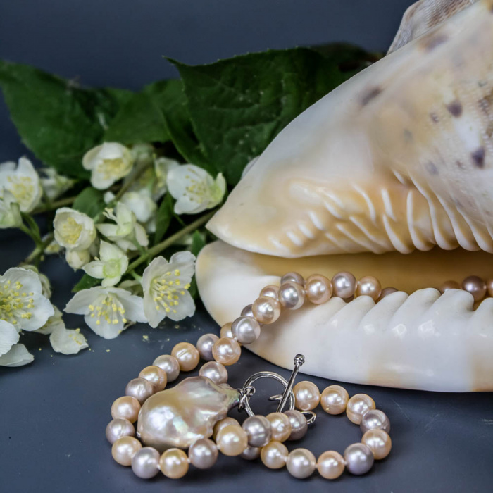 Этот изумительный браслет станет отражением вашего безупречного вкуса и элегантности. Натуральные жемчужины, соединённые прочной нитью, свободно скользят вдоль руки, излучая нежный свет и очаровывая своей чистотой. Благодаря своей гибкости и многообразию комбинаций, этот браслет легко адаптируется к различным случаям и событиям. Замок выполнен из качественного серебра. Вы сможете надеть его как дополнение к повседневному стилю, так и в качестве завершающего акцента к вечернему платью. Приобретите этот красивый аксессуар, и он несомненно станет неотъемлемой частью вашей коллекции украшений.