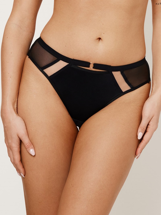 Состав: 78% полиамид, 5% полиэстер, 5% хлопок, 12% эластан Трусы бразильяно BUTTERFLY BLACK от европейского производителя Subtille. Выполнены из микросетки и микрофибры. Сзади из двойной микросетки. Ластовица хлопковая. Золотые аксессуары.