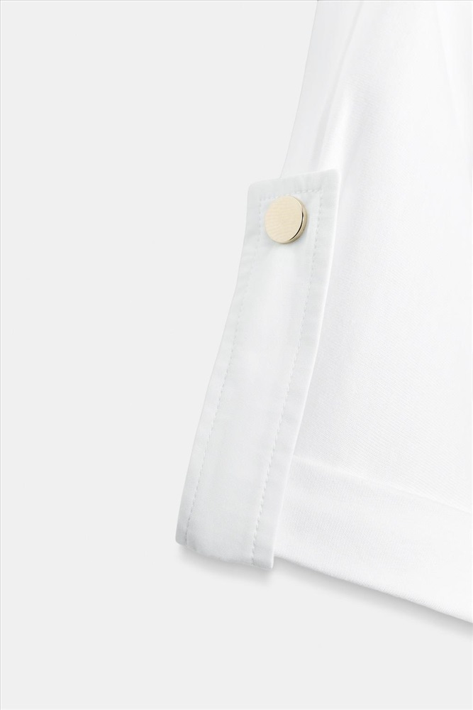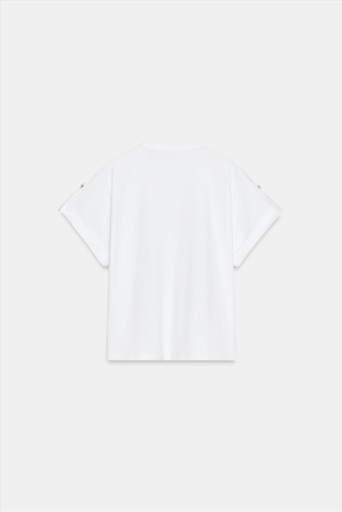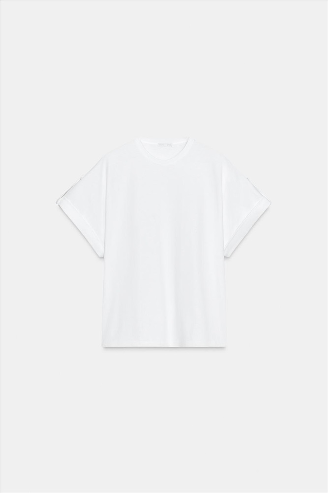 T-shirt made in cotton yarn. Featuring a round neck and short sleeves with button tab turn-ups. Straight hem.