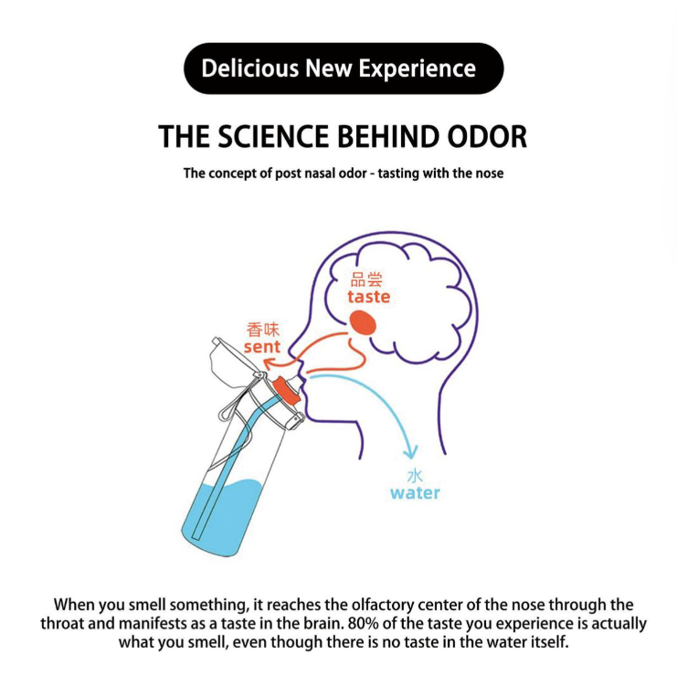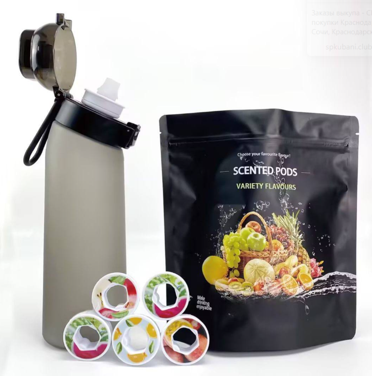 Бутылка для воды с насадками разных вкусов. 8 вкусов