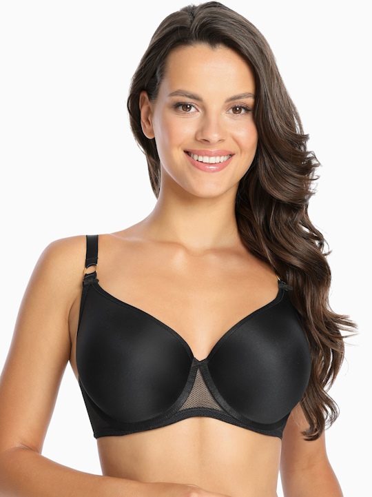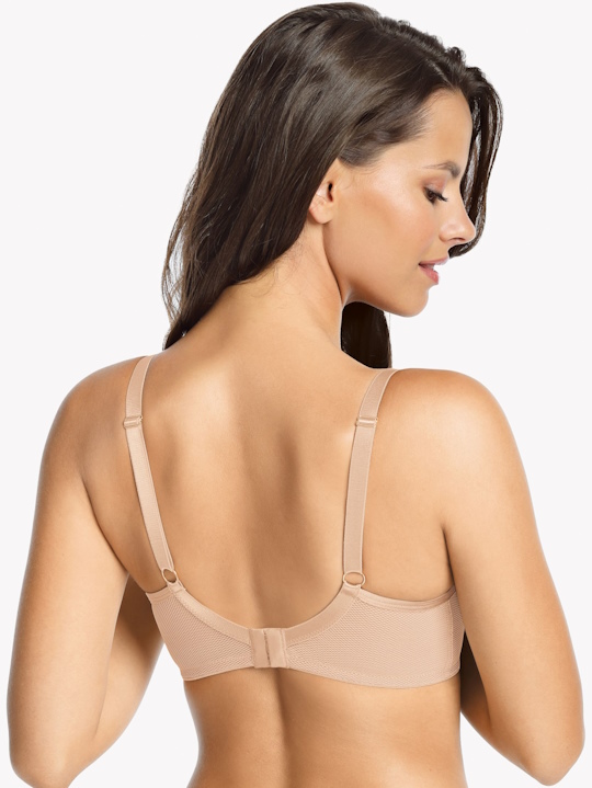Бюстгальтер 1082 Gaja U выполнен на косточках, термоформованные чашки с небольшим несъемным пуш-апом не имеют швов и не раздражает нежную кожу груди, пояс из ажурной сетки с продублирован сеткой в тон. Бретельки не съемные, регулируются по длине. На спине застёжка на удлинитель, фурнитура металлическая цвета желтого золота. Бюстгальтер практически незаметен под одеждой.
