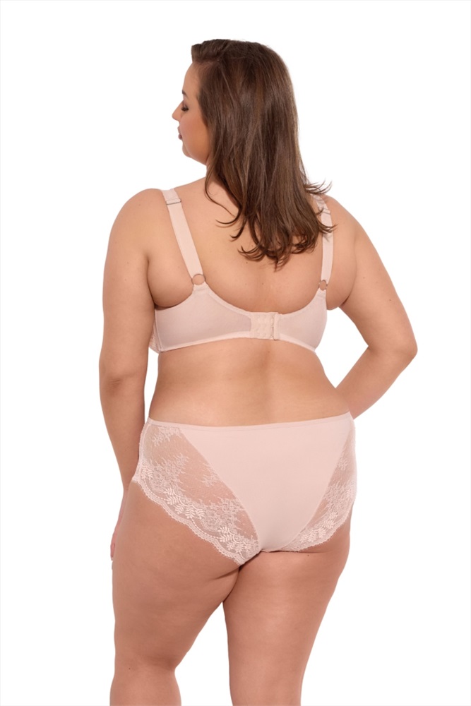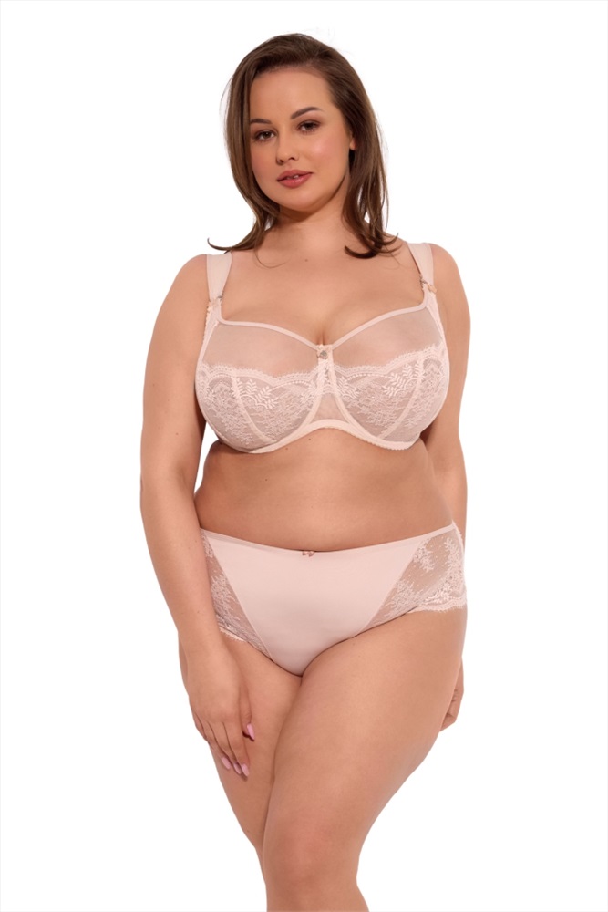 Бюстгальтер 1262 Camilla M выполнен в цвете жемчуг на косточках, чашки мягкие, шитые из тонкой сетки и кружевного полотна с ресничками, с боковым подкроем, спинка из стабилизирующей сетки. Вертикальный вырез на чашке позволит модели красиво приподнять и придать форму бюсту. Бретельки на плечах с мягким тонким поролоном, не отстёгиваются, регулируются по длине, на спине застёжка - удлинитель на крючках, фурнитура металлическая. Бюст сочетается с трусами 1262 Camilla.
