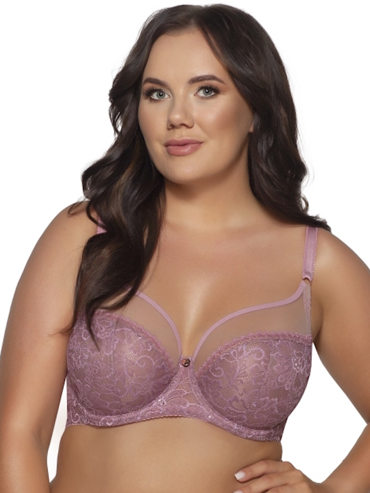 Комфортный бюстгальтер арт. 1396 М выполнен из кружева цвета CRYSTAL LILY (Хрустальная лилия) и сетки телесного цвета с мягкими чашками, на косточках. Бюстгальтер создан с учётом анатомических особенностей корпулентных женщин, благодаря вертикальным швам на чашечках оптически уменьшает бюст, обеспечивает равномерное распределение нагрузки, формирует красивую линию декольте. Пояс из эластичного сетчатого полотна. Бретельки регулируются по длине, не отсегиваются, на спине застёжка на удлинитель, фурнитура металлическая цвета меди. Бюстгальтер идеально сочетается с трусиками арт. 1396.