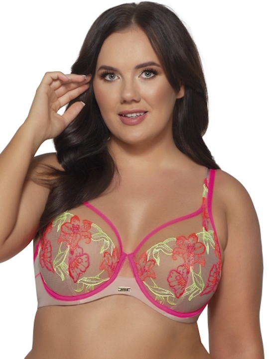 Комфортный бюстгальтер арт. 2072 М TROPEA выполнен на основе модели 1396 в цвете FLUO (Флуо) с мягкими чашками, на косточках, шитыми из сетки телесного цвета богато расшитыми неоновыми цветами, благодаря розовой окантовке чашек и пояса модель становится выразительной. Пояс из эластичного сетчатого полотна и микрофибры с видимым швом. Бретельки двухцветные регулируются по длине, не отстегиваются, на спине застёжка на удлинитель на 2 или 3 крючка, фурнитура металлическая цвета желтого золота. Поддайтесь чарующей магии 2072 и окунитесь в красочное безумие! Бюстгальтер идеально сочетается с трусиками арт. 2070, 2071, 2072.