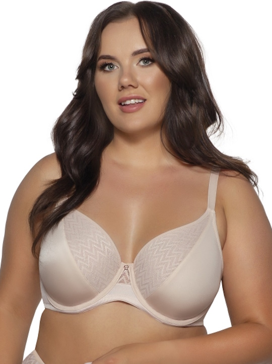 Бюстгальтер 2103 INNESA бралетт выполнен с мягкими чашечками на косточках. Чашки шитые не из эластичной ткани и эластичного зигзагообразного тюля, продублированного телесной сеткой, с боковым подкроем. Пояс сшит из плотной стабилизирующей сетки и эластичного зигзагообразного тюля, продублированного телесной сеткой. Бретельки регулируются по длине, не отстёгиваются. На спине застёжка на удлинитель, количество крючков в ряду застёжки увеличивается пропорционально размеру бюстгальтера от 2 до 3 крючков, фурнитура металлическая цвета меди. Бюстгальтер идеально сочетается с трусиками 2103.