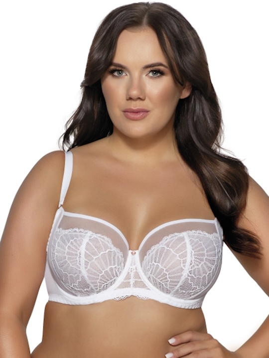 Состав: полиамид 88%, хлопок 8%, эластан 4% Бюстгальтер 2109 M PUELLA выполнен на основе модели 1130 на косточках, чашки мягкие, шитые из сетки и кружева, с боковым подкроем, пояс из плотной стабилизирующей сетки, бретельки не отстёгиваются, регулируются по длине. На спине застёжка на удлинитель, количество крючков в ряду застёжки увеличивается пропорционально размеру бюстгальтера от 2 до 3. Фурнитура металлическая цвета меди. Легкое, как паутина, кружево окутывает мягкий бюстгальтер снизу, кокетливо поднимаясь по чашкам. Верхняя часть бюстгальтера остается кокетливо прозрачной и элегантно подчеркнутой матовой окантовкой. В этой причудливой композиции грудь идеально очерчена и соблазнительно округлена, а целое имеет исключительно чувственный характер. Бюстгальтер идеально сочетается с трусиками арт. 2109.