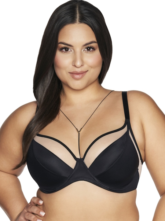 Бюстгальтер 2136 Viva бралетт выполнен на основе бюста 2103 с мягкими чашечками на косточках. Чашки шитые, из неэластичной ткани и телесной сетки. Пояс сшит из плотной стабилизирующей черной сетки с геометрическими вставками телесной сетки по бокам. Бретельки регулируются по длине, не отстёгиваются. На спине застёжка на удлинитель на 2 крючка, фурнитура металлическая цвета желтого золота. В зоне декольте несъемная тонкая эластичная резинка с подвижным металлическим аксессуаром в виде буквы V. Бюстгальтер идеально сочетается с трусиками 2135, 2136.
