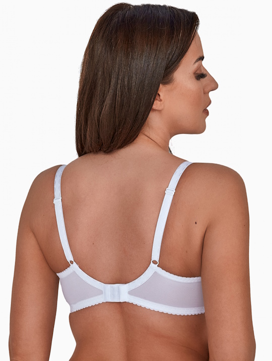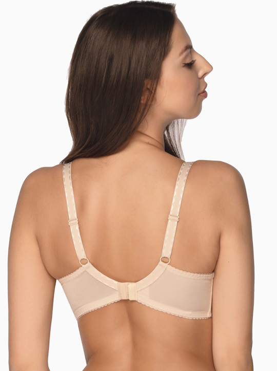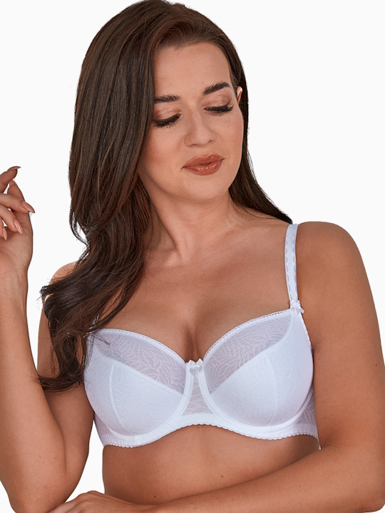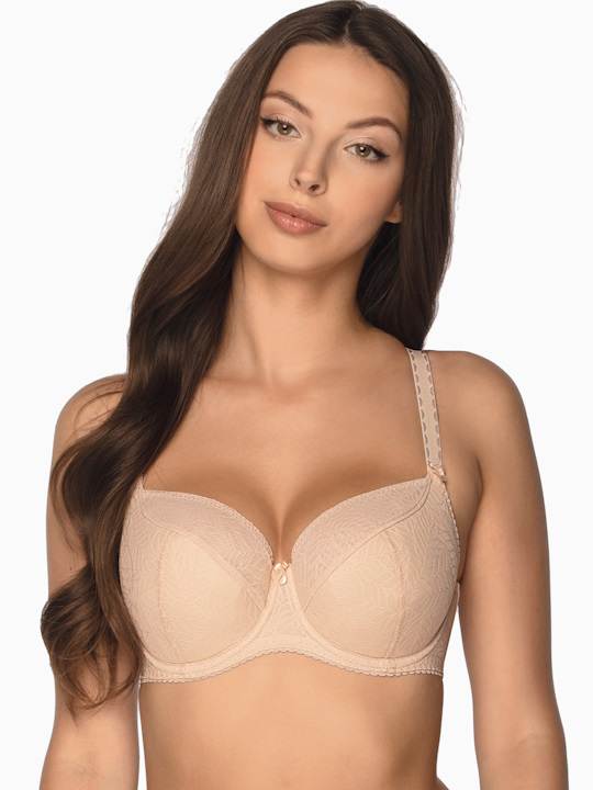 Состав: полиамид 51%, полиэстер 25%, хлопок 12%, эластан 10%, полиуретан 2% Бюстгальтер 594 Sandy PU выполнен на косточках, с дополнительными боковыми поддержками, чашки шитые, нижняя часть на тонком поролоне, внутренняя сторона проложена хлопковым трикотажем, верхняя часть и внешняя покрыта кружевным полотном с растительным рисунком, спинка из стабилизирующей сетки. Бретельки не съёмные, регулируются по длине. На спине застёжка на удлинитель, фурнитура металлическая крашеная. Бюстгальтер идеально сочетается с трусиками 594 Sandy. Комментарии к товару