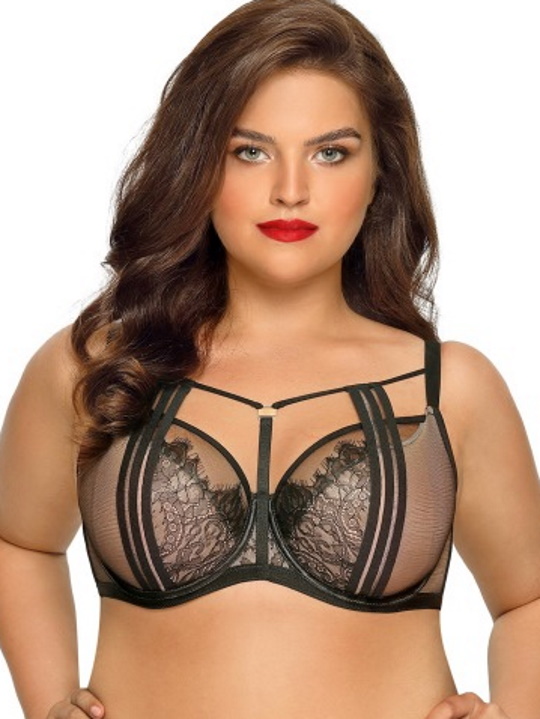 Состав: полиамид 88%, хлопок 8%, эластан 4% Бюстгальтер Angelina Rouge №02 PU выполнен на косточках, чашки шитые. Нижняя часть чашки из тонкого поролона телесного цвета, с внешней стороны покрыта телесной сеткой, верхняя часть из черной сетки. Бретели, резинки, окантовка косточек контрастного черного цвета. Бретельки бюста не отстёгиваются, регулируются по длине, в зоне декольте декоративные бретели с широкими эластичными резинками и красным кружевом, фурнитура цвета золота. На спине застёжка на удлинитель, количество крючков в ряду застёжки увеличивается пропорционально размеру бюстгальтера. Бюстгальтер идеально сочетается с трусиками Angelina. Комментарии к товару