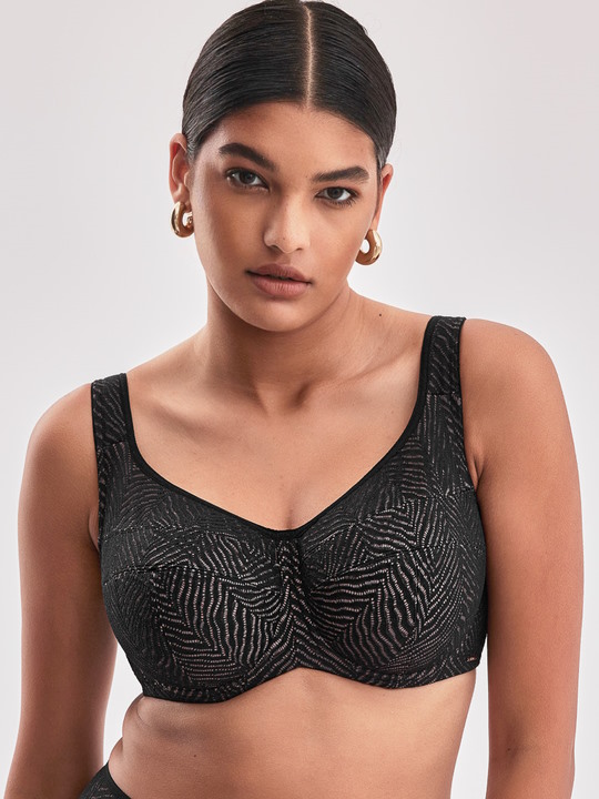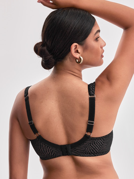 Состав: полиамид 70%, полиэстер 20%, эластан 10% Бюстгальтер Celeste M выполнен в черном цвете на косточках, с дополнительными боковыми поддержками, чашки шитые из кружевного полотна, чашки и кружевная спинка продублированы сеткой цвета тауп. Бретельки широкие не отстёгиваются, регулируются по длине, с тонким поролоном для комфорта. На спине застёжка на удлинитель на 3 крючка. Фурнитура металлическая цвета меди. Бюстгальтер идеально сочетается с трусиками Celeste. Комментарии к товару