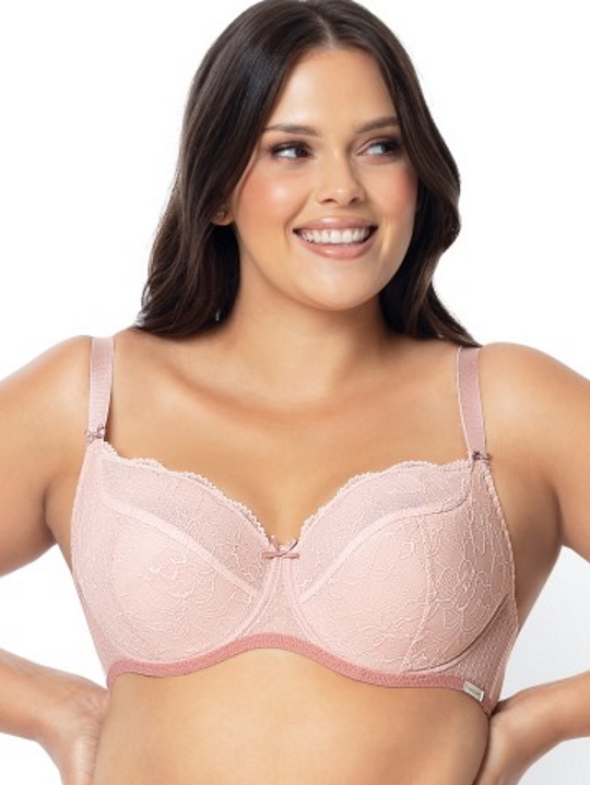 Бюстгальтер из коллекции Chelo PU с дополнительными боковыми поддержками, чашки шитые, на косточках, нижняя часть на тонком поролоне розового цвета, верхняя из гипюра, продублированного сеткой, внутри чашечки проложены хлопковым трикотажем, снаружи из гипюра. Бретельки пришиты, регулируются по длине. На спине застёжка на удлинитель, количество крючков в ряду застёжки увеличивается пропорционально размеру бюстгальтера. Бюстгальтер идеально сочетается с трусиками из коллекции Chelo.