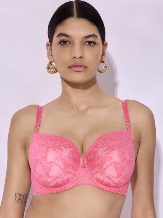 Бюстгальтер Coachella PU выполнен на основе бюста Marie PU, на косточках, с дополнительными боковыми поддержками, чашки шитые, нижняя часть на тонком поролоне, внутренняя сторона проложена хлопковым трикотажем, снаружи покрыта кружевом, верхняя часть чашки и спинка кружевные. Бретельки не отстёгиваются, регулируются по длине. На спине застёжка на удлинитель, количество крючков в ряду застёжки увеличивается пропорционально размеру бюстгальтера, фурнитура металлическая цвета меди. Бюстгальтер идеально сочетается с трусиками Coachella.