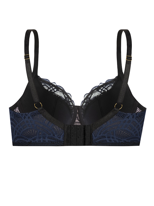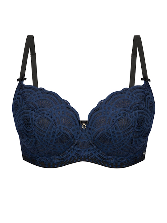Состав: полиамид 60%, полиэстер 16%, хлопок 10%, эластан 7%, другие 7% Бюстгальтер Debora PU выполнен на косточках, с дополнительными боковыми поддержками, чашки шитые, нижняя часть чашки на тонком поролоне черного цвета, внутренняя сторона проложена хлопковым трикотажем, внешняя и верхняя часть чашки из кружева темно-синего цвета, спинка кружевная, продублирована черной сеткой. Бретельки пришиты, регулируются по длине. На спине застёжка на удлинитель, фурнитура металлическая цвета желтого золота. Бюстгальтер идеально сочетается с трусиками Debora. Комментарии к товару