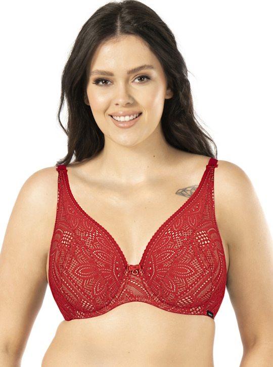 Состав: полиамид 60%, полиэстер 16%, хлопок 10%, эластан 7%, другие 7% Бюстгальтер Desire M бралетт выполнен на косточках, чашки мягкие, шитые из кружева, продублированы телесной сеткой. Пояс из сетки продублирован телесной сеткой. Бретельки пришиты, регулируются по длине. На спине застёжка на удлинитель, фурнитура металлическая цвета желтого золота. Бюстгальтер идеально сочетается с трусиками Desire. Комментарии к товару