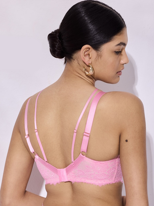 Бюстгальтер French Kiss PU выполнен на основе бюста Marie PU на косточках, с дополнительными боковыми поддержками, чашки шитые, нижняя часть чашек на тонком поролоне светло-розового цвета, верхняя и внешняя сторона из кружева с цветочным орнаментом с ресничками . Спинка из кружева продублирована розовой сеткой. Бретельки не отстёгиваются, регулируются по длине. На спине застёжка на удлинитель, фурнитура металлическая цвета розового золота. В зоне декольте дополнительные съемные тонкие бретели, регулируются по длине, крепятся между чашками и на спинке, при желании их можно перекрещивать на спине, Бюстгальтер идеально сочетается с трусиками French Kiss.