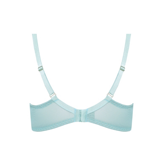 Состав: полиамид 60%, полиэстер 16%, хлопок 10%, эластан 7%, другие 7% Бюстгальтер Gaja U на косточках, чашки шитые, на тонком поролоне телесного цвета, внутренняя сторона проложена хлопковым трикотажем, внешняя из кружева цвета бирюзы. Бретельки пришиты, регулируются по длине. На спине застёжка на удлинитель, количество крючков в ряду застёжки, увеличивается пропорционально размеру бюстгальтера. Бюстгальтер идеально сочетается с трусиками Gaja.