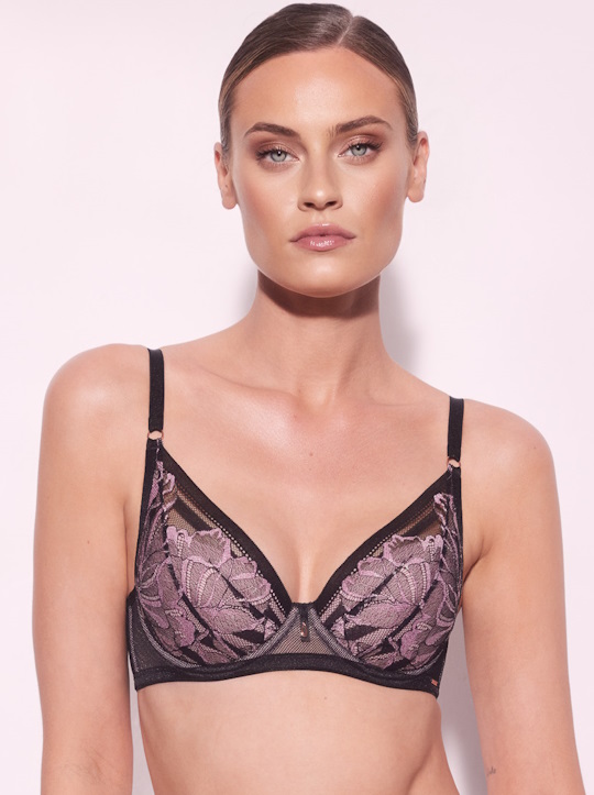Состав: полиамид 50%, полиэстер 15%, хлопок 15%, вискоза 10%, эластан 10% Бюстгальтер Glossy Iris P-UP выполнен на косточках, с дополнительными боковыми поддержками, чашки шитые на тонком поролоне розового цвета, со съёмными пуш-ап вкладышами, внешняя сторона покрыта нежным кружевом с черно-розовыми цветами, с эффектом мерцания. Спинка из черной сетки продублирована розовой сеткой. Бретельки не отстёгиваются, регулируются по длине. На спине застёжка на удлинитель, количество крючков в ряду застёжки, увеличивается пропорционально размеру бюстгальтера, фурнитура металлическая цвета меди. Бюстгальтер идеально сочетается с трусиками Glossy Iris.