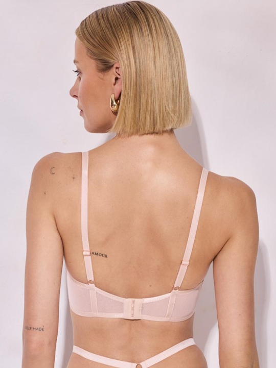 Состав: полиамид 40%, полиэстер 40%, вискоза 10%, эластан 10% Бюстгальтер из коллекции Glossy Iris P-UP выполнен с формованными поролоновыми чашками телесного цвета без косточек, покрытыми нежным кружевом с розовыми цветами с эффектом мерцания, с дополнительными боковыми поддержками для предотвращения скручивания. Бретельки не отстёгиваются, регулируются по длине. На спине застёжка на удлинитель, количество крючков в ряду застёжки увеличивается пропорционально размеру бюстгальтера. Пояс из эластичной телесной сетки на подкладке из стабилизирующей сеточки. Фурнитура металлическая цвета розового золота. Бюстгальтер идеально сочетается с трусиками из коллекции Glossy Iris.