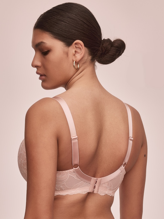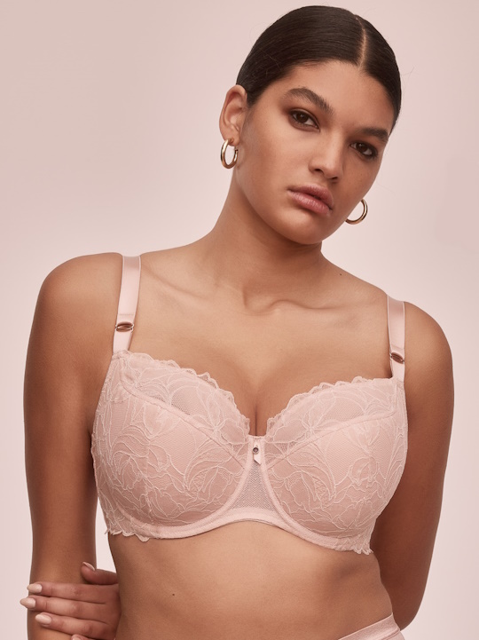 Состав: полиамид 65%, эластан 15%, полиэстер 10%, хлопок 10% Бюст Glow PU выполнен на основе бюста CHITA PU  на косточках, с дополнительными боковыми поддержками, чашки шитые, нижняя часть на тонком поролоне цвета пудры, с внешней стороны из кружева в легким мерцающим эффектом, внутренняя сторона проложена хлопковым трикотажем, верхняя часть кружевная, продублирована сеткой в тон. Бретельки не отстёгиваются, регулируются по длине, фурнитура металлическая цвета меди. Спинка кружевная продублирована сеткой. На спине застёжка на удлинитель, количество крючков в ряду застёжки, увеличивается пропорционально размеру бюстгальтера. Бюстгальтер идеально сочетается с трусиками Glow.