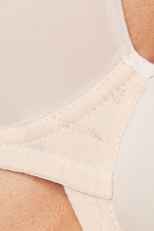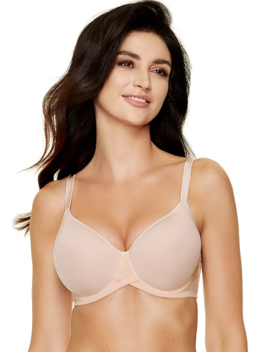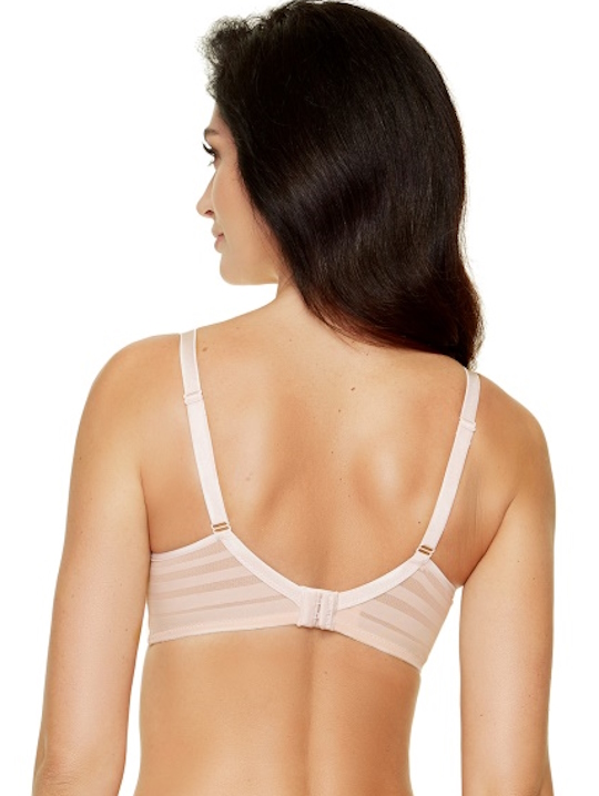 Бюстгальтер Luna B5 V2 с формованными поролоновыми чашками типа spacer на косточках, с дополнительными боковыми поддержками, внешняя сторона чашек гладкая. Спинка из сетки в полоску, продублирована стабилизирующей сеткой. Бретельки пришиты, регулируются по длине. На спине застёжка на удлинитель, количество крючков в ряду застёжки увеличивается пропорционально размеру бюстгальтера. Фурнитура металлическая крашеная. Отлично сочетатается с трусами Luna.