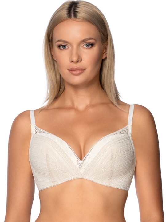 Состав: полиамид 60%, полиэстер 16%, хлопок 10%, эластан 7%, другие 7% Бюстгальтер из коллекции Madonna Super push up (монокап) с формованными поролоновыми чашками цвета экрю без косточек, с дополнительными боковыми поддержками, внешняя сторона покрыта кружевом цвета капучино, спинка из двойной сетки цвета экрю. Бретельки не отстёгиваются, регулируются по длине, фурнитура металлическая. На спине застёжка на удлинитель, количество крючков в ряду застёжки увеличивается пропорционально размеру бюстгальтера. Бюстгальтер идеально сочетается с трусиками из коллекции Madonna. Комментарии к товару