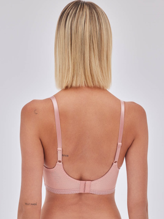 Состав: полиамид 60%, полиэстер 30%, эластан 10% Бюстгальтер из коллекции NudeRose Super P-UP выполнен на основе бюста Marie super P-UP/Glow super P-UP с формованными поролоновыми чашками телесного цвета без косточек, с дополнительными боковыми поддержками, внешняя сторона покрыта кружевом с цветочным рисунком. Спинка из декоративной сетки продублирована телесной сеткой. Бретельки не отстёгиваются, регулируются по длине. На спине застёжка на удлинитель, количество крючков в ряду застёжки увеличивается пропорционально размеру бюстгальтера. Фурнитура металлическая цвета розового золота. Бюстгальтер идеально сочетается с трусиками из коллекции NudeRose. Комментарии к товару
