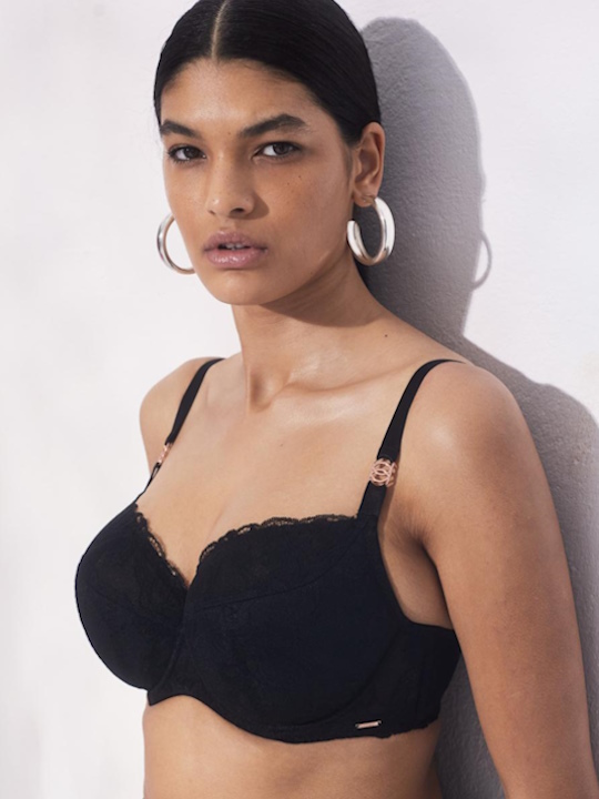 Бюстгальтер Sublime PU выполнен на косточках (на каркасах), с дополнительными боковыми поддержками, чашки шитые, нижняя часть на тонком поролоне, внутренняя сторона проложена хлопковым трикотажем, внешняя и верхняя часть чашки из кружевного полотна, спинка кружевная продублирована черной сеткой. Бретельки не отстёгиваются, регулируются по длине. На спине застёжка на удлинитель, количество крючков в ряду застёжки, увеличивается пропорционально размеру бюстгальтера, фурнитура металлическая цвета меди. Бюстгальтер идеально сочетается с трусиками Sublime.