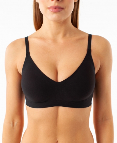 Состав: 70% ПОЛИАМИД/ 30% ЭЛАСТАН Бесшовный, бескаркасный бюстгальтер 54002-02 из приятного, гладкого, эластичного „clean cut” материала. Формованные вкладыши с вработанным дополнительным объёмом в нижней части. Бюстгальтер из двух слоёв полотна. Слоя соединены между собой методом горячего склеивания. Чрезвычайно удобные широкие боковые детали стана. Застёжка плоская, клееная. Бретели пришитые, с регуляцией.