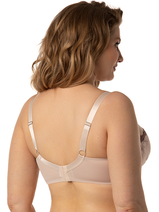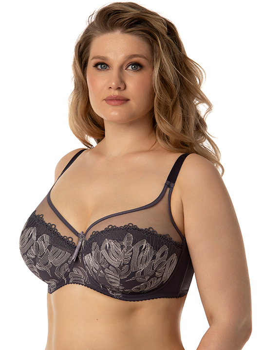 Состав: Полиамид – 72%, хлопок – 18%, эластан – 10% Бюстгальтер на каркасах с дублированной чашкой. Дублированная основа чашки имеет Т-образное членение. Это позволяет высоко подымать грудь, придавая ей правильную округлую форму. Наружная чашка из ажурного шитья имеет две разнонаправленные вытачки. Вышитая деталь скрывает линии членения дублированной основы, делая чашку гладкой и исключает пролегание швов бюстгальтера под одеждой. Широкий стан плотно облегает тело и обеспечивает стабильную комфортную посадку бюстгальтера на фигуре. Ширины бретелей и застёжки зависят от размера.