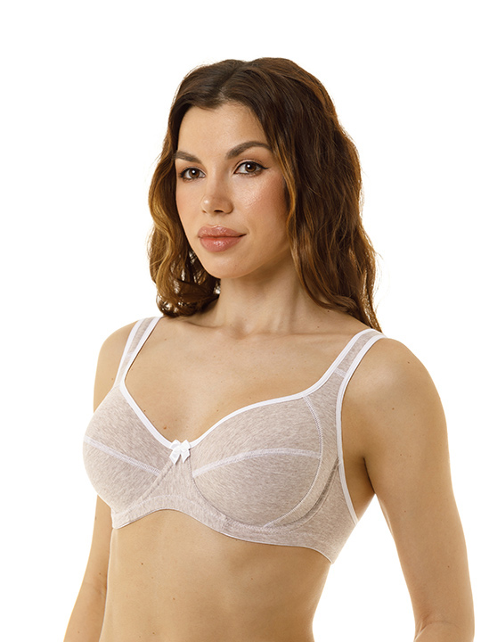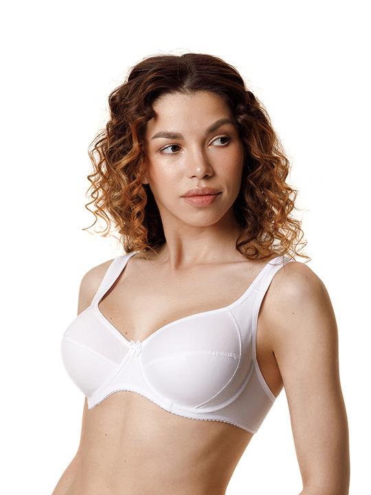Состав: 92% хлопок, 8% эластан Бюстгальтер на каркасах из х/б эластичного полотна высокого качества. Мягкая чашка с боковым подрезом, без боговой кости и расширенной бретелью. Плоские швы. Нижняя часть чашки и боковой подрез усилены подкладкой. Комментарии к товару