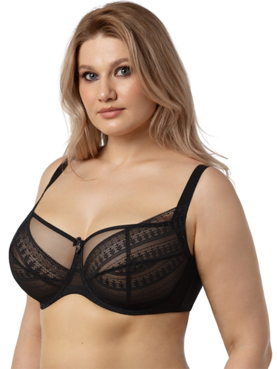 Состав: 88% полиамид. 12% эластан Бюстгальтер - балконет на каркасах с мягкой чашкой. Чашки оригинального конструктивного решения. Внутренняя чашка с вертикальным рельефом и вытачкой создаёт округлую форму. Лёгкая сетчатая структура использованного в ней материала позволяет коже дышать под изделием, обеспечивая наивысший комфорт при носке. Наружная чашка с диагональным членением из ажурного кружева украшает бюстгальтер и создаёт оказывает поддержку. Благодаря этому бюстгальтер надёжно и комфортно фиксирует грудь в нужном положении.