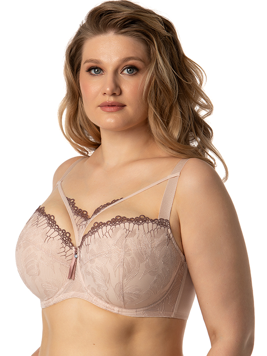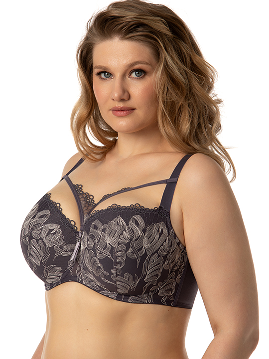 Состав: Полиамид – 70%, хлопок – 18%, эластан – 12% Бюстгальтер - балконет на каркасах с дублированной чашкой.Чашки оригинального конструктивного решения. Дублированная основа чашки диагонального членения с вертикальным рельефом нижней части. Кружевная деталь скрывает линии членения дублированной основы, делая чашку гладкой и исключает пролегание швов бюстгальтера под одеждой. Каркасы плотно прилегают к телу без излишнего давления и раздражения. Широкий стан с боковыми упругими пластинами плотно облегает тело и обеспечивает стабильную комфортную посадку бюстгальтера на фигуре. Декоративные стропы съёмные.