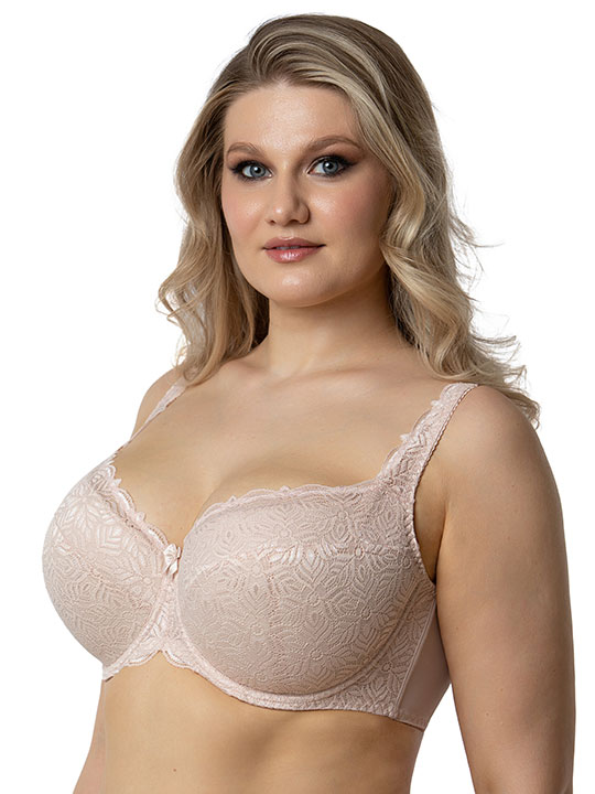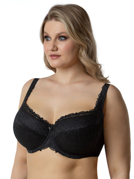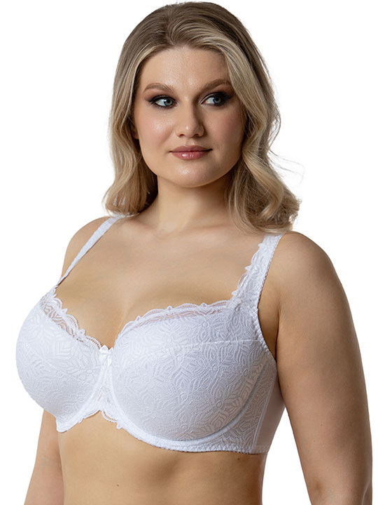 Состав: полиамид – 68%, хлопок – 23%, эластан – 9% Бюстгальтер на каркасах с дублированной чашкой. Чашки овальной формы с диагональным членением создают округлую наполненную форму. Кружевная верхней детали чашки шире дублированного основания, что в сочетании с широкой кружевной отделкой бретели позволяет сгладить линию перехода от верха чашки к открытому участку груди и с делать бюстгальтер более незаметным под облегающей одеждой. Широкий стан с боковыми упругими пластинами плотно облегает тело и обеспечивает стабильную комфортную посадку бюстгальтера на фигуре.