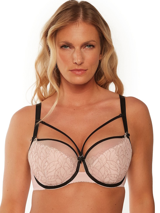 Бюстгальтер 1240 выполнен на косточках, чашки шитые, нижняя часть на тонком светло-розовом поролоне, внутренняя сторона прошита хлопковым трикотажем, верхняя часть чашки из сетки, внешняя часть из сетки с вышивкой бежевой нитью, спинка из микрофибры, в зоне декольте дополнительные тонкие съемные бретели. Бретельки черные, не отстгиваются, регулируются по длине, на спине застжка - удлинитель на крючках, фурнитура металлическая крашеная. Бюст сочетается с трусами 1240 .