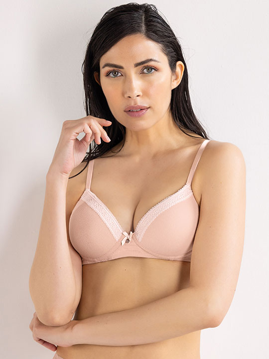 Бюстгальтер-балконет с градуированными чашками, без косточек. Стан усилен спереди сеткой и боковыми костями. Несъемные регулируемые бретели. Застежка в 2 ряда на 4 позиции. Выполнен из рельефной микрофибры, что придаёт современность и утончённую привлекательность. Украшен кружевной отделкой и бантиком с кулоном в форме сердечка, благодаря чему становится настоящей драгоценностью женского белья. Коллекция "Darling".