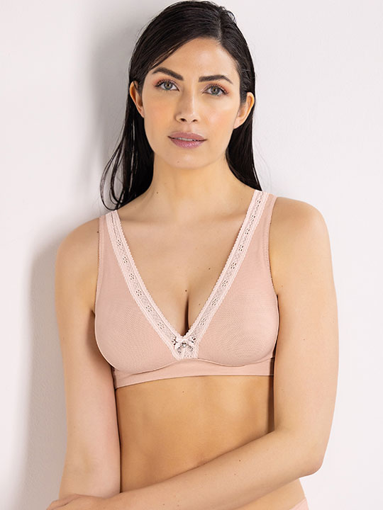 Бюстгальтер-триангул с мягкой чашкой, без косточек. Несъемные регулируемые бретели. Застежка в 2 ряда на 4 позиции. Выполнен из рельефной микрофибры, что придаёт современность и утончённую привлекательность. Украшен кружевной отделкой и бантиком с кулоном в форме сердечка, благодаря чему становится настоящей драгоценностью женского белья. Коллекция "Darling".