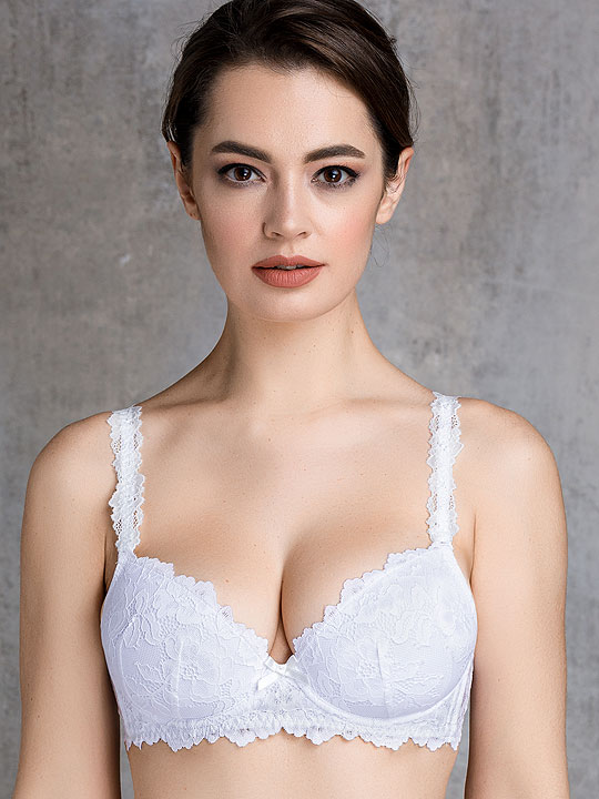 Бюстгальтер-балконет со сшивной чашкой Palermo, с Т-образным швом из тонкого поролона, без эффекта пуш-ап. Передняя часть бретелей декорированна узким кружевом. Выполнен из кружева. Застежка в 2 ряда на 3 позиции. Коллекция "Vivian".