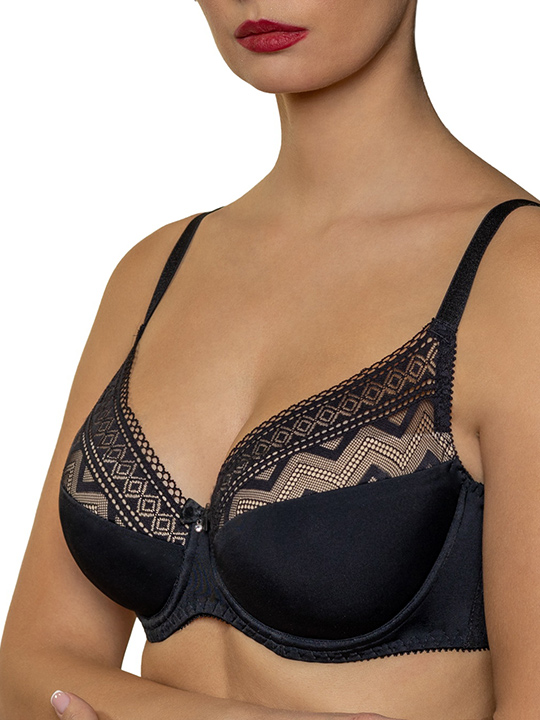 Коллекция: Afina Состав: полиамид 80%, эластан 20% Бюстгальтер "полупоролон" из эластичного кружева с орнаментом "геометрия", эластичной микрофибры и полотна soft. Нижние детали чашек продублированы хлопком. Уникальность данной модели заключается в том, что она соединила в себе 3 конструкции: и бюстгальте Комментарии к товару