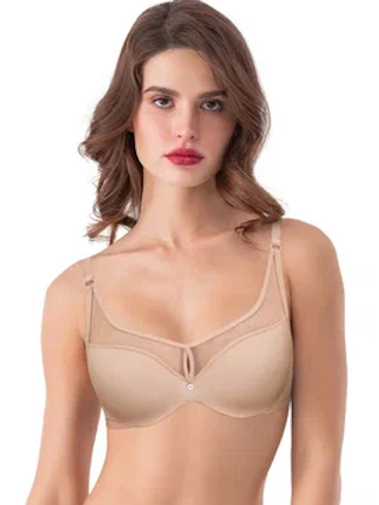 Коллекция: Ornella Состав: Ткань- 85% PA + 15% EA, сетка- 89% PA + 11% EA, подкладка чашки- 90% PE + 10% CO Производитель: Mioocchi Бюстгальтер-балконет с градуированной цельноформованной чашкой Etna, на косточках. Регулируемые бретели. Застежка в два ряда на три позиции. Открытая форма декольте, при этом хорошо поддерживает сеткой сверху. Выполнен из прозрачной крупной сетки и микрофибры, обработаны плоскими резинками на крыльях, пришитыми поверх основных материалов. Коллекция "Ornella". Комментарии к товару