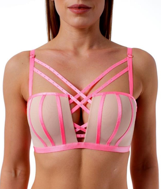Состав: 85% ПОЛИАМИД/ 15% ЭЛАСТАН Бюстгальтер на поролоне бескостный,без каркасов, выполнен из эластичной сетки с декоративными стрепами со стразами. Бретели несъемные.