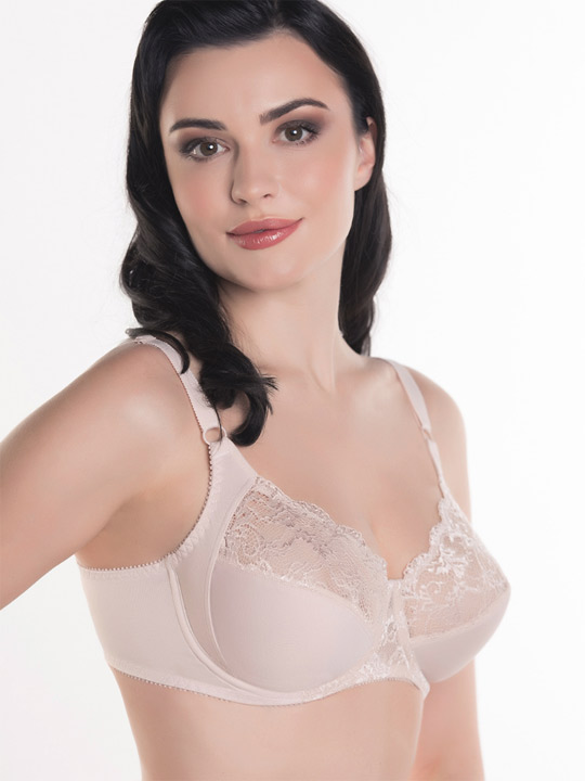 Состав: 90% полиамид, 10% эластан Бюстгальтер на каркасах из эластичного трикотажа, эластичного кружевного полотна и функционального полотна. Мягкие чашки из двух деталей. Боковая корректирующая деталь переходит в бретель.