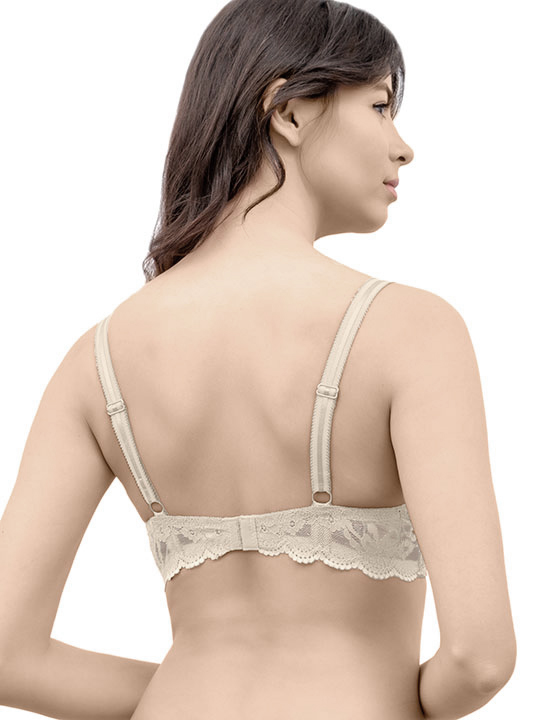 Состав: 85% полиамид 15% эластан Кружевной бюстгальтер с формованными чашками на каркасах и с дополнительными вертикальными каркасами на стане, что обеспечивает естественную поддержку груди. Фестоны кружева нежно обрамляют грудь. Комментарии к товару