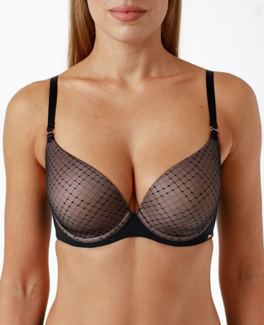 Коллекция: Cross Состав: 85% ПОЛИАМИД/ 15% ЭЛАСТАН Бюстгальтер «пуш-ап» c формованными чашками. Создает эффект роскошного декольте. Чашка выполнена из сетки с декоративным геометрическим рисунком, стан выполнен из эластичной микрофибры, дублирован эластичной сеткой. Бретели съемные. Украшение: медальон COQUETTE REVUE. Комментарии к товару