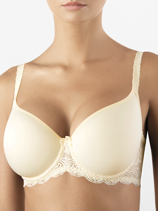 Коллекция: VOVA_Лаура Состав: полиамид 80%, эластан 20% Производитель: V.O.V.A. Маркир Миам Бюстгальтер с формованными чашками "спейсер" на каркасах в кружевном стане с заниженной серединкой и открытой линией декольте. Создает естественный круглый силуэт. Комментарии к товару