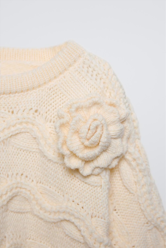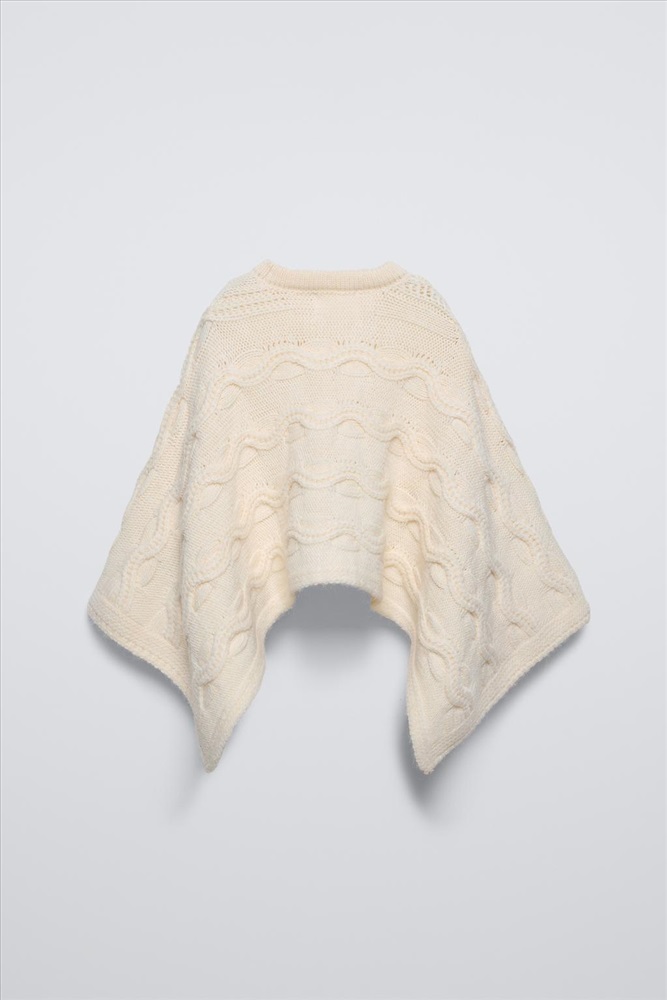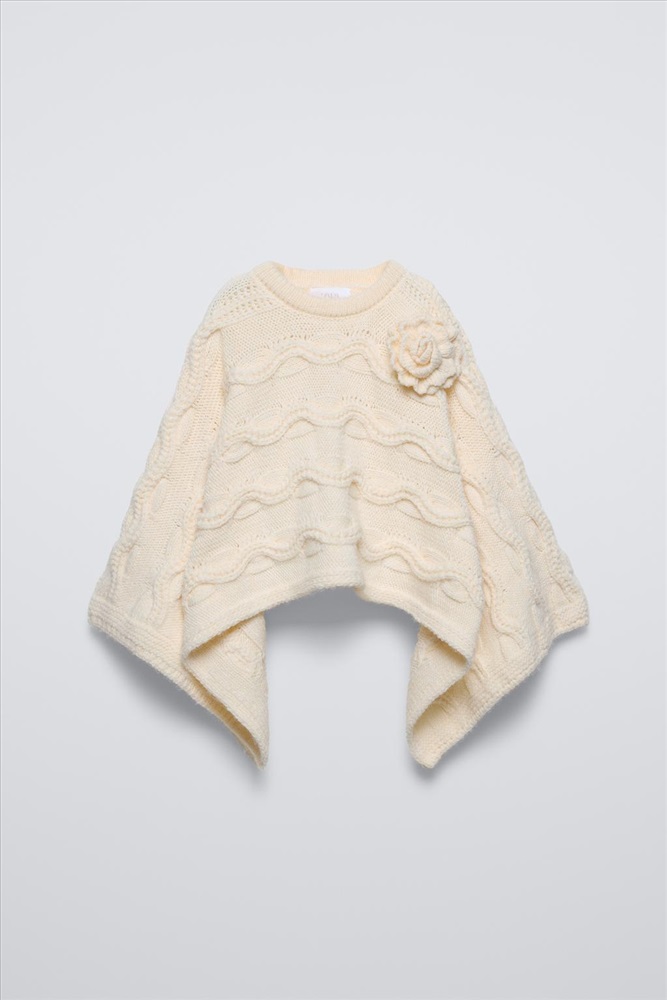 CABLE-KNIT CAPE WITH FLOWER